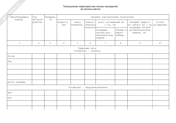 Таксационная характеристика лесных насаждений на лесном участке (рекомендуемый образец заполнения)