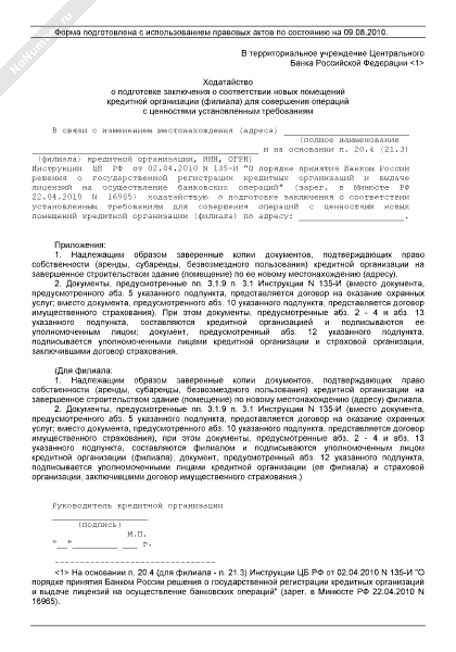 - 219Ходатайство о подготовке заключения о соответствии новых помещений кредитной организации (филиала) для совершения операций с ценностями установленным требованиям
