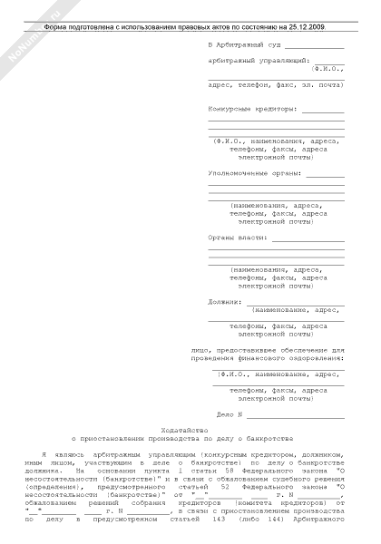 Ходатайство о приостановлении производства по делу о банкротстве
