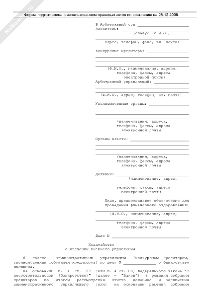 Ходатайство в арбитражный суд о продлении срока внешнего управления (общая форма)