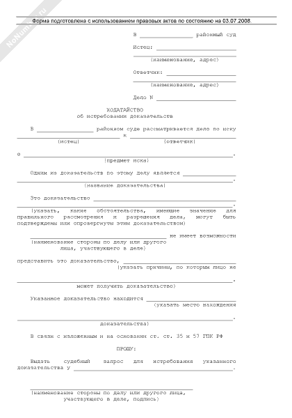 Ходатайство в арбитражный суд об истребовании доказательства по делу (рекомендуемый образец заполнения)