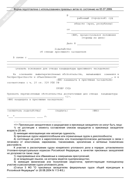 Ходатайство об отводе присяжного заседателя