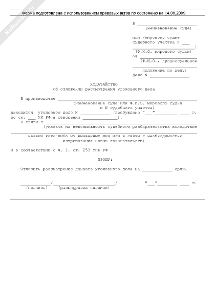 Ходатайство об отложении рассмотрения уголовного дела