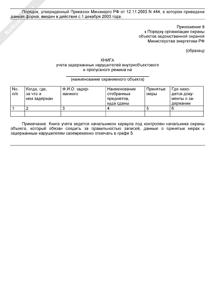 - 280Книга учета задержанных нарушителей внутриобъектового и пропускного режима на охраняемом объекте
