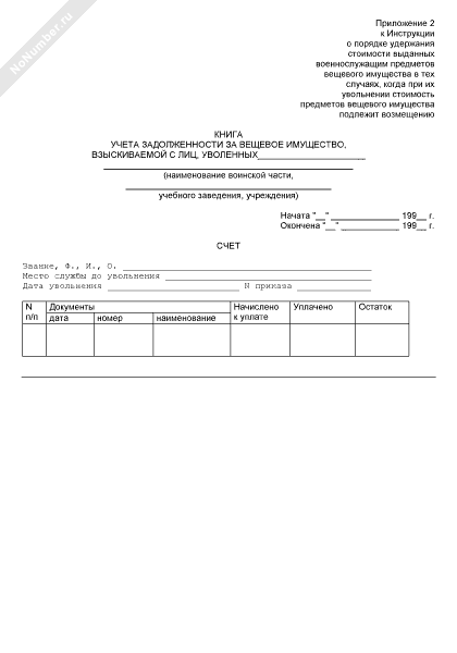 - 278Книга учета задолженности за вещевое имущество, взыскиваемой с лиц, уволенных из воинской части
