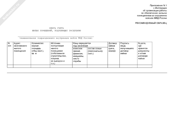 - 274Книга учета жилых помещений специализированного жилищного фонда Минобороны России, подлежащих заселению по кварирно-эксплуатационной части района