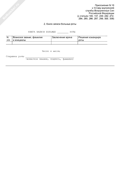 - 462Формы документов, ведущихся в роте. Книга записи больных роты