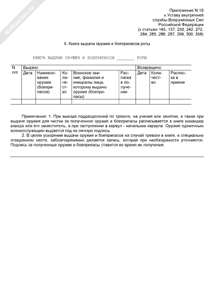 - 464Формы документов, ведущихся в роте. Книга выдачи оружия и боеприпасов роты