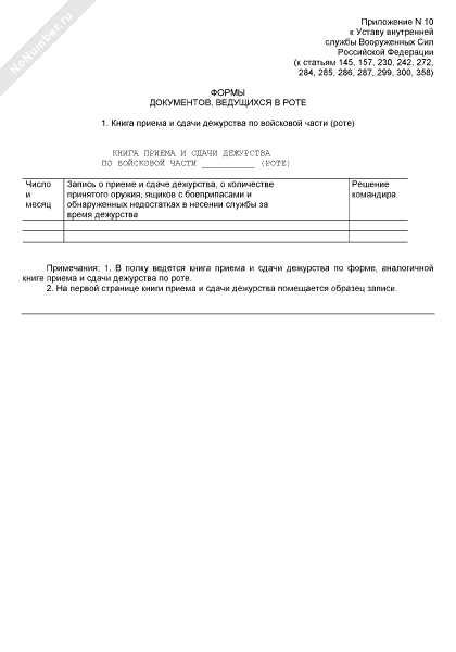 - 461Формы документов, ведущихся в роте. Книга приема и сдачи дежурства по войсковой части (роте)