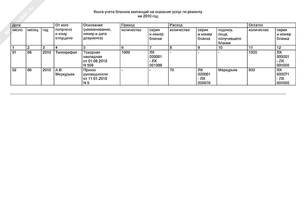 - 480Книга учета бланков квитанций на оказание услуг по ремонту