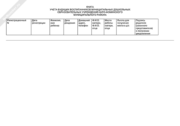 Книга учета будущих воспитанников муниципальных дошкольных образовательных учреждений Наро-Фоминского муниципального района Московской области