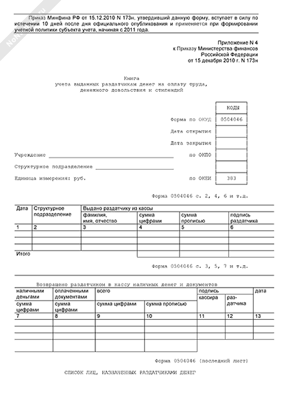 Книга учета выданных раздатчикам денег на оплату труда, денежного довольствия и стипендий