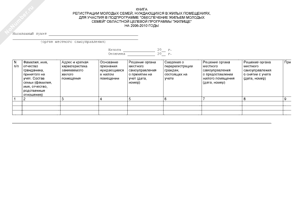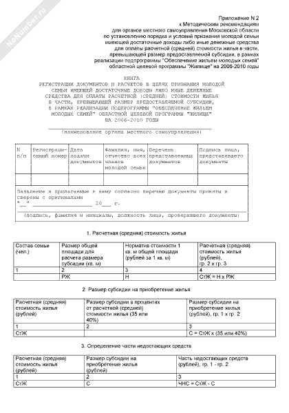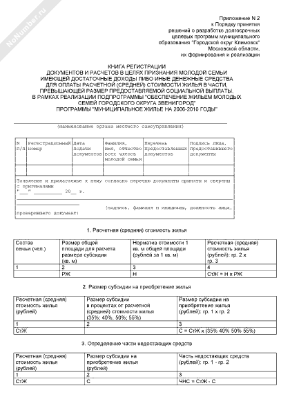 - 160Книга регистрации документов и расчетов в целях признания молодой семьи имеющей достаточные доходы либо иные денежные средства для оплаты расчетной (средней) стоимости жилья в части, превышающей размер предоставляемой субсидии, в рамках реализации подпрограммы «Обеспечение жильем молодых семей» областной целевой программы «Жилище» на 2006-2010 годы