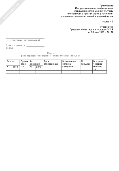- 142Книга регистрации реестров и отправленных посылок (форма № 5)