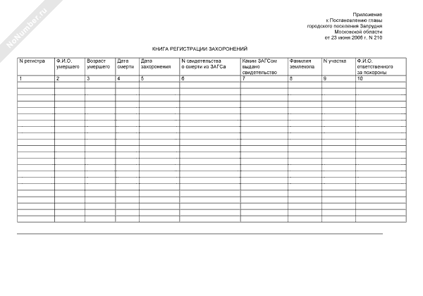 - 159Книга регистрации захоронений на муниципальном кладбище городского поселения Запрудня Талдомского муниципального района Московской области
