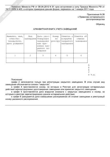 - Источник– Приказ Минюста РФ от 19.11.2009 № 403 (редакция от 23.11.2010 № 360)