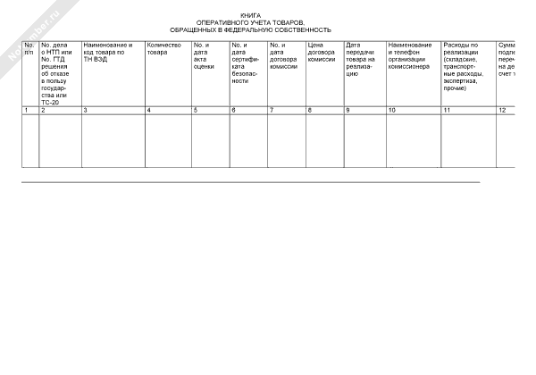 Книга оперативного учета товаров, обращенных в федеральную собственность (рекомендуемый образец заполнения)