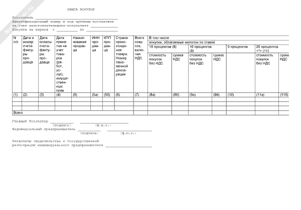 Книга покупок при расчетах по налогу на добавленную стоимость (рекомендуемый образец заполнения)
