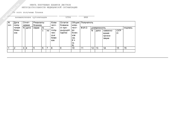 Книга получения бланков листков нетрудоспособности медицинской организации (рекомендуемый образец заполнения)