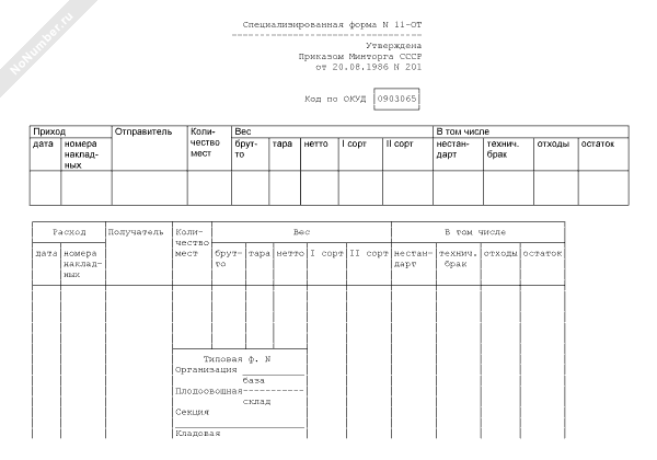 Книга кладовщика. Специализированная форма № 11-ОТ