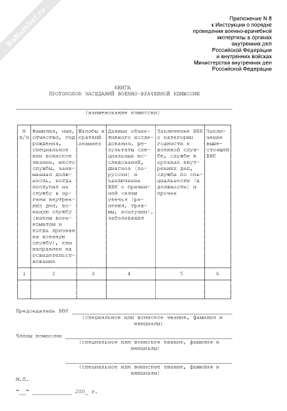 Книга протоколов заседаний военно-врачебной комиссии в органах внутренних дел Российской Федерации (рекомендуемый образец заполнения)