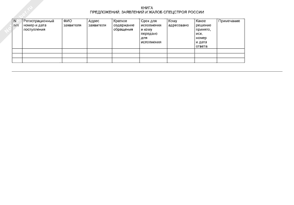 Книга предложений, заявлений и жалоб Спецстроя России
