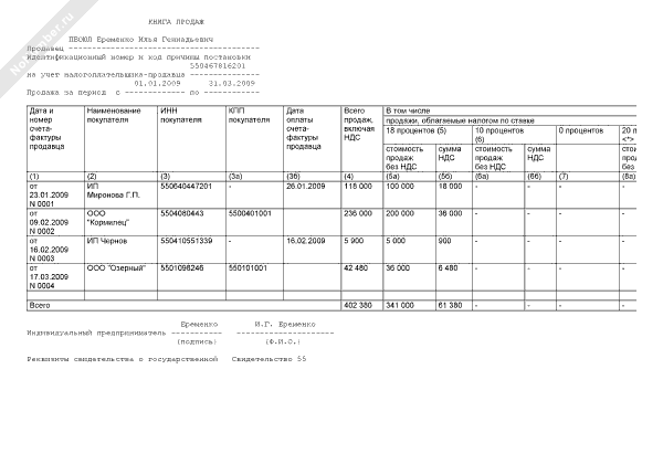 Книга продаж