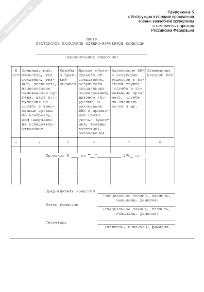 Книга протоколов заседаний военно-врачебной комиссии в таможенных органах Российской Федерации (рекомендуемый образец заполнения)