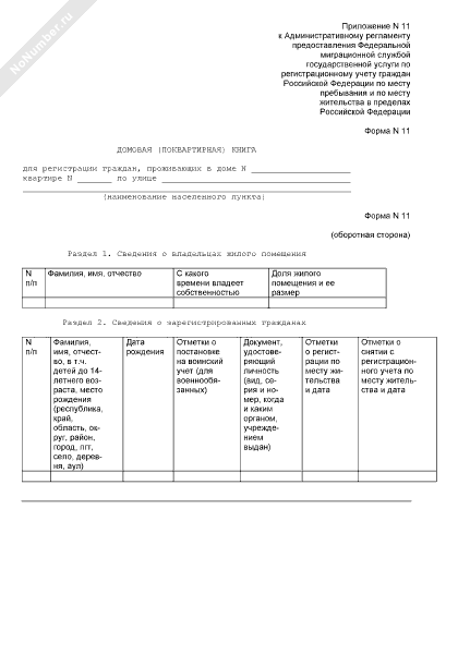 Домовая (поквартирная) книга для регистрации граждан (форма № 11)