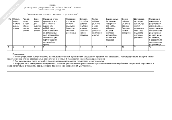 Книга регистрации разрешений на добычу (вылов) водных биологических ресурсов
