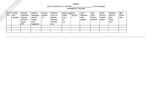 Книга учета анализов по серебру госинспекции пробирного надзора. Форма № 8а (рекомендуемый образец заполнения)