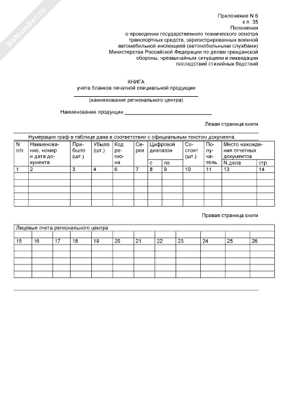 Книга учета бланков печатной специальной продукции регионального центра МЧС России (рекомендуемый образец заполнения)