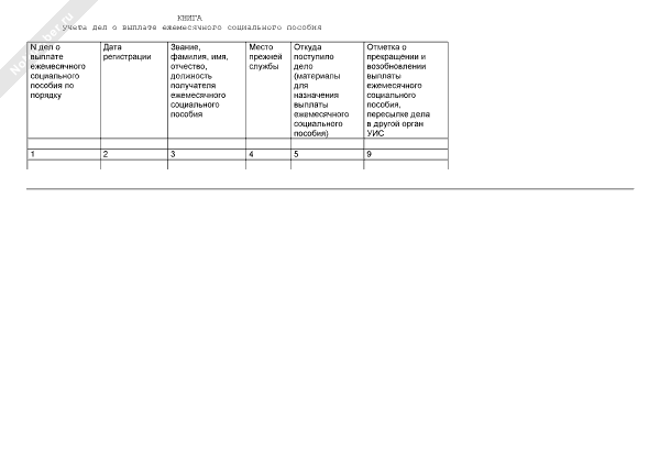 Книга учета дел о выплате ежемесячного социального пособия (рекомендуемый образец заполнения)