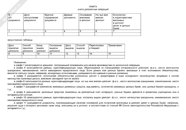 Книга учета депозитных операций (рекомендуемый образец заполнения)
