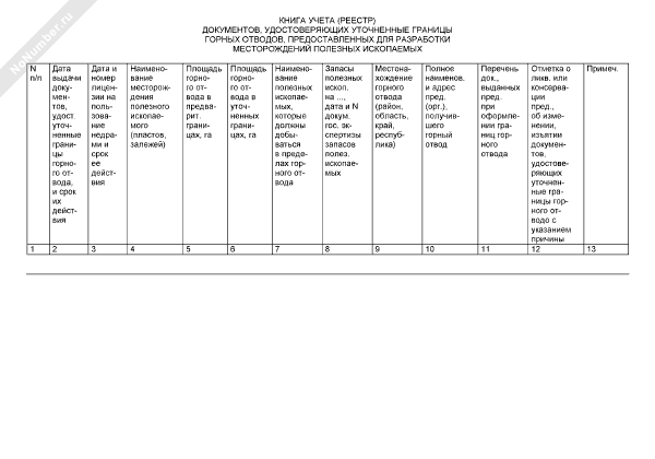 Книга учета (реестр) документов, удостоверяющих уточненные границы горных отводов, предоставленных для разработки месторождений полезных ископаемых