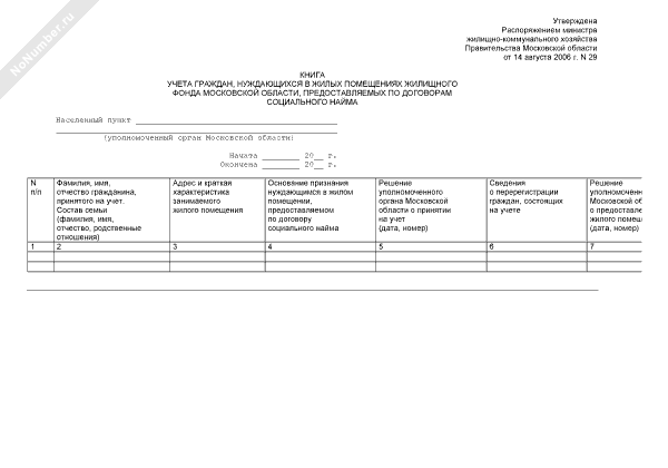Книга учета граждан, нуждающихся в жилых помещениях жилищного фонда Московской области, предоставляемых по договорам социального найма (рекомендуемый образец заполнения)