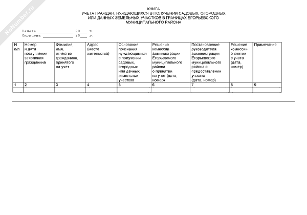 Книга учета граждан, нуждающихся в получении садовых, огородных или дачных земельных участков в границах Егорьевского муниципального района Московской области (рекомендуемый образец заполнения)