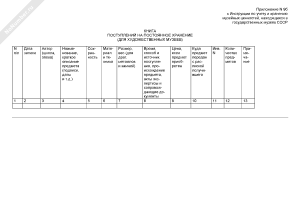 Книга поступлений на постоянное хранение (для художественных музеев)