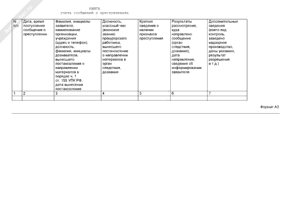 Книга учета сообщений о преступлениях в органах прокуратуры Российской Федерации (рекомендуемый образец заполнения)