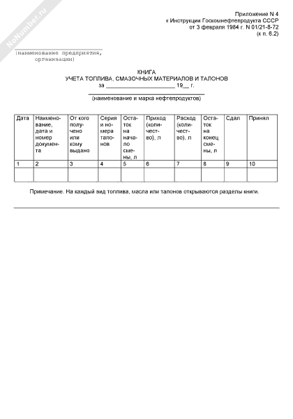 Книга учета топлива, смазочных материалов и талонов