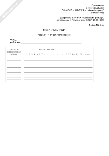 Книга учета труда. Форма № 3-КХ (рекомендуемый образец заполнения)