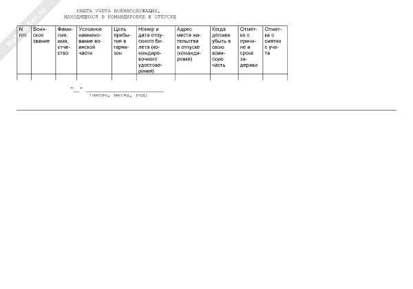 Книга учета военнослужащих, находящихся в командировке и отпуске