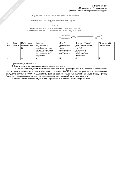 Книга учета входящих и исходящих телефонограмм и факсимильных сообщений и иной информации, поступающих в Федеральную службу судебных приставов (рекомендуемый образец заполнения)