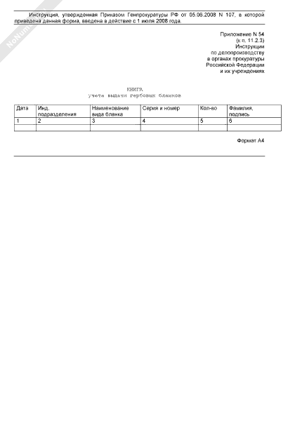 - Источник– Приказ Генпрокуратуры РФ от 05.06.2008 № 107