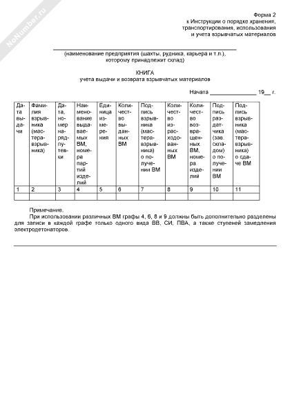 Книга учета выдачи и возврата взрывчатых материалов (форма № 2)