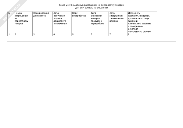 Книга учета выданных разрешений на переработку товаров для внутреннего потребления (рекомендуемый образец заполнения)