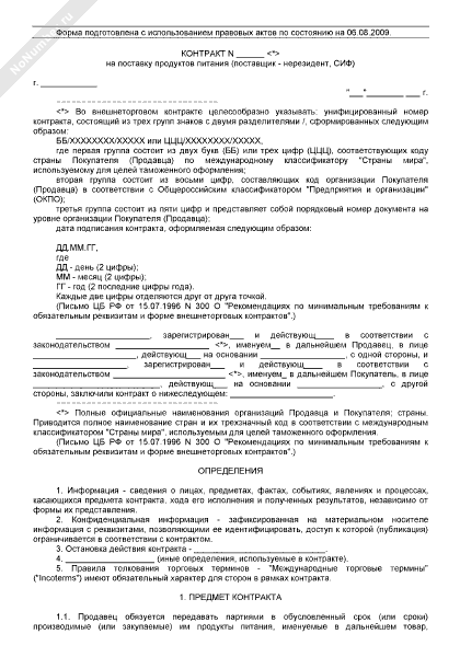 Внешнеторговый контракт купли-продажи товара (рекомендуемый образец заполнения)