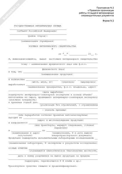 - 7Корешок ветеринарного свидетельства на продукцию вывозимую за пределы района (города) по территории Российской Федерации (форма № 2)