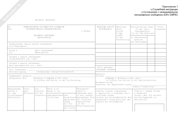 - 2Багажная квитанция. Серия A 999999 (международное пассажирское сообщение) (рус./нем.)
