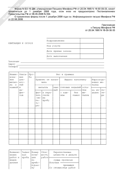 - Номер типовой формы 10, 0504510